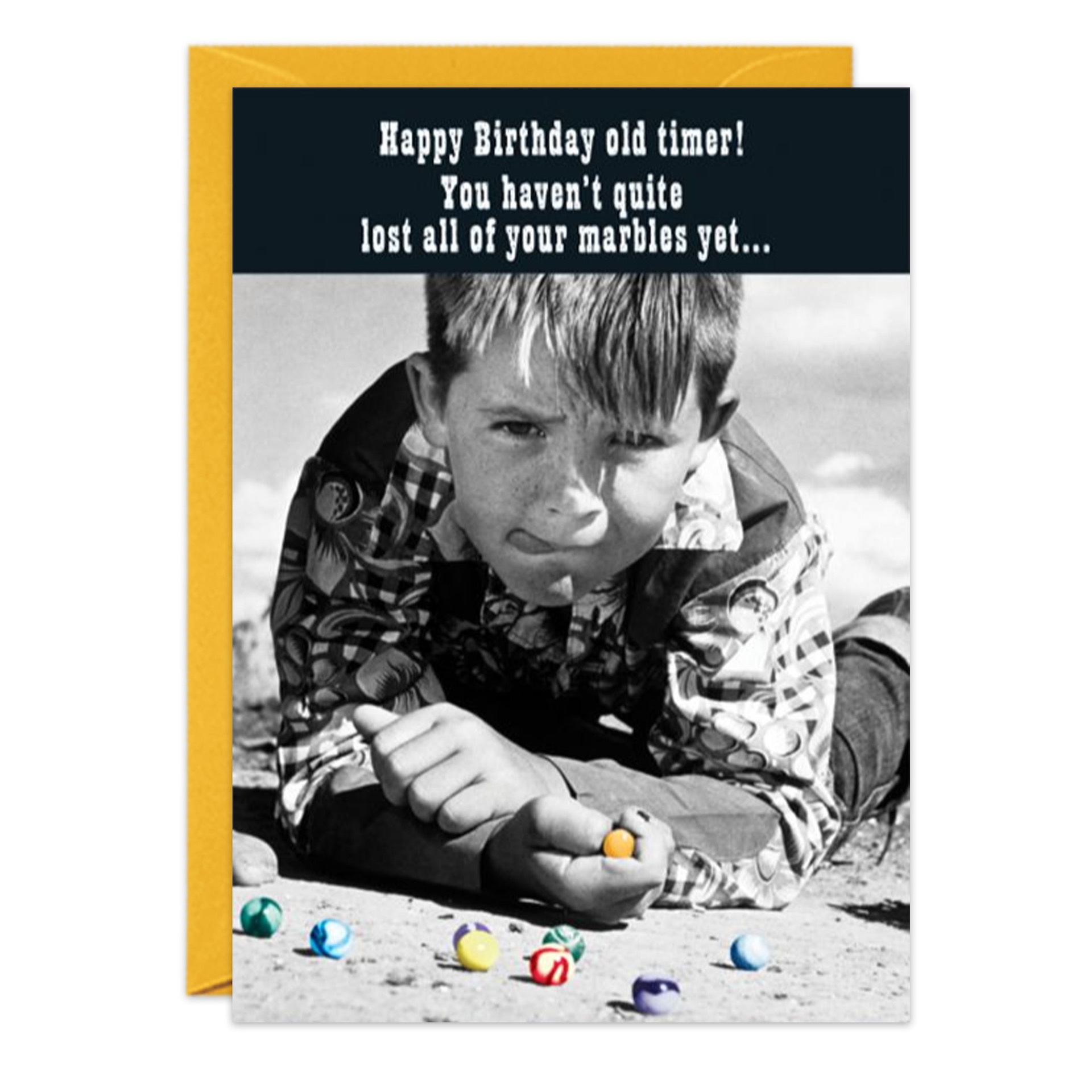 FRONT: Happy Birthday old timer! You haven’t quite lost all of your marbles yet. . .